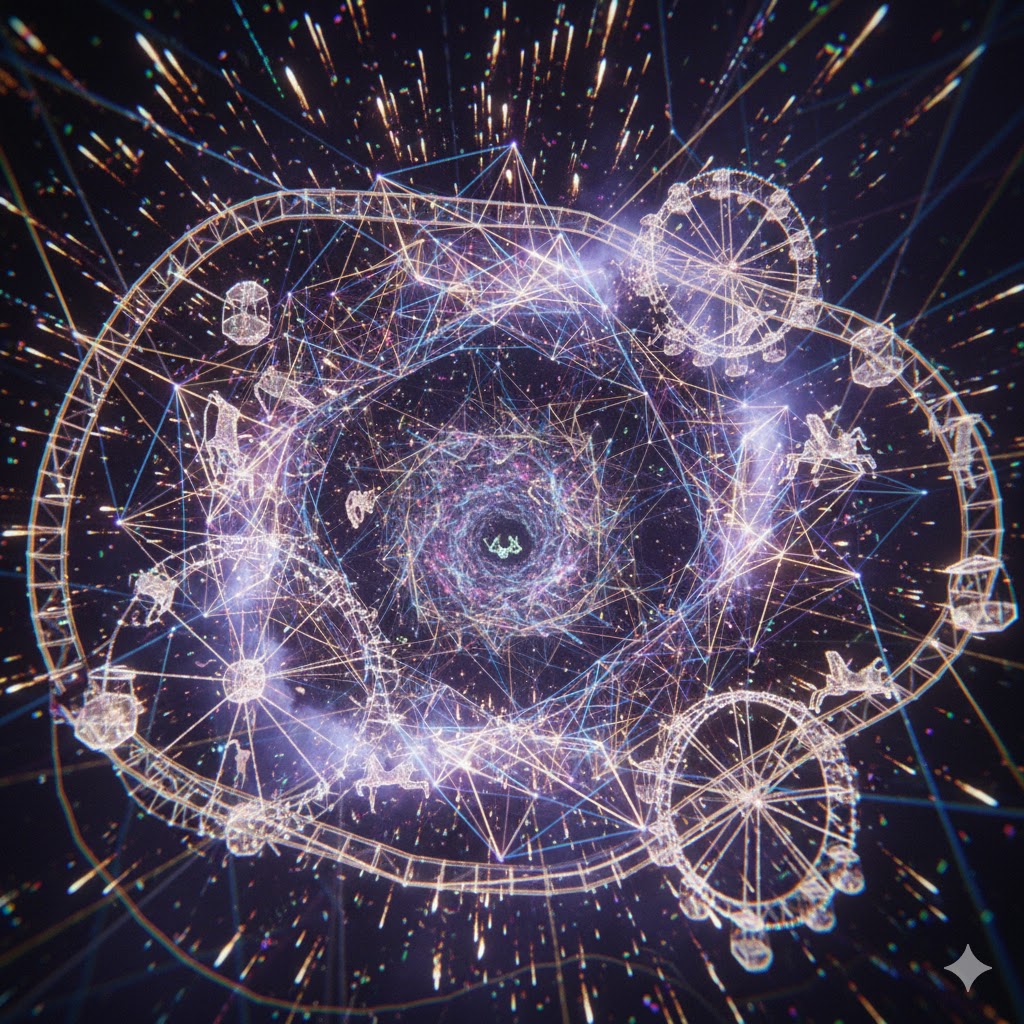 体験中、目の前に現れたのはイルミネーションのような光景。 まるで遊園地のようにキラキラと輝いていた世界。
